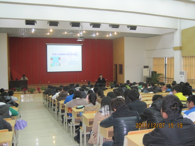 12月7日下午,2011年班級心理委員工作會議在大學(xué)生活動中心226舉行,來自全院147個班級的心理委員參加了此次會議。