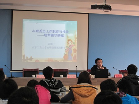 開班儀式結(jié)束后舉辦了兩場(chǎng)專題講座。首場(chǎng)講座由南京工業(yè)大學(xué)心理中心陳羿江老師主講“朋輩心理輔導(dǎo)的原則和技能”,陳老師從班級(jí)心理委員的作用與優(yōu)勢(shì)、職責(zé)與任務(wù)、方法與途徑、素質(zhì)與要求四個(gè)方面對(duì)朋輩心理輔導(dǎo)進(jìn)行了詳細(xì)的闡述。隨后金陵科技學(xué)院心理中心陳智慧主任主講“心理咨詢與團(tuán)體輔導(dǎo)”,從心理咨詢與團(tuán)體輔導(dǎo)中的技巧出發(fā),講訴了班級(jí)心理委員在服務(wù)學(xué)生、組織班級(jí)團(tuán)體心理輔導(dǎo)時(shí)應(yīng)該掌握的技巧。