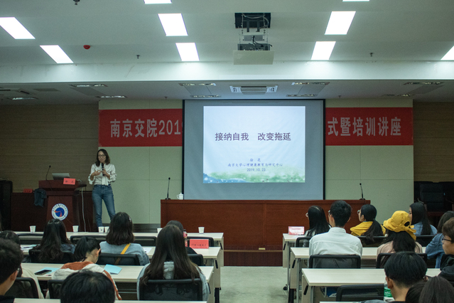 隨后,南京醫(yī)科大學(xué)王志琳教授和南京大學(xué)徐花教授分別給同學(xué)們帶來(lái)“大學(xué)生異常心理問(wèn)題的識(shí)別與處理”和“接納自我,改變拖延”兩場(chǎng)精彩的講座。講座過(guò)程中,主講人與同學(xué)們進(jìn)行了熱烈探討。同學(xué)們積極參與互動(dòng),增加了角色認(rèn)同感。