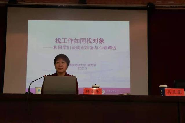 本次講座邀請南京財經(jīng)大學黨委研究生工作部部長韓力爭教授主講,講座主題為“大學生就業(yè)心理”。韓教授從人生、愛情、工作三大方向總結人生最重要的三個階段:求學、求職和求偶,由淺入深地講述了大學生常見的就業(yè)心理問題與表現(xiàn),啟發(fā)并引導同學們思考就業(yè)準備和就業(yè)心理調試,幽默風趣的講座風格受到同學們的喜愛與歡迎,現(xiàn)場多次互動,同學們受益匪淺。