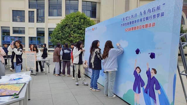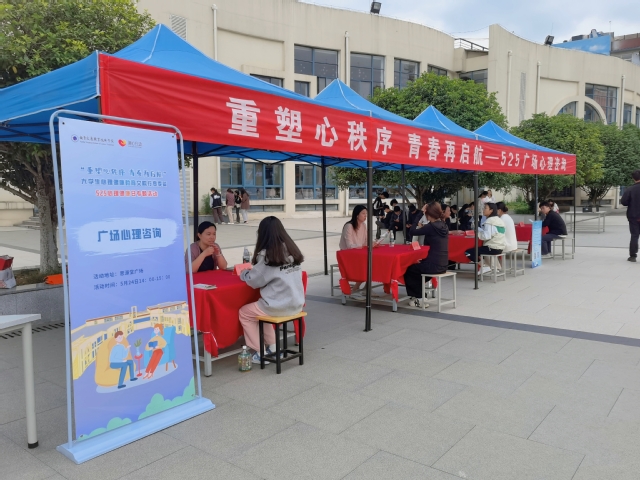 為進(jìn)一步推進(jìn)省教育廳關(guān)于《關(guān)愛青少年生命健康“潤心”行動實(shí)施方案》中強(qiáng)化“培根鑄魂、啟智潤心”的指導(dǎo)思想落地,多渠道普及心理健康教育,引導(dǎo)學(xué)生形成健康、樂觀、積極的生活態(tài)度,為畢業(yè)生提供更暢通的情緒表達(dá)路徑,全面提升學(xué)生心理素質(zhì),5月24日下午,由學(xué)工處心理健康教育與指導(dǎo)中心主辦,各二級學(xué)院(系、部)協(xié)辦,在學(xué)校思源堂廣場開展525心理健康日專題活動。