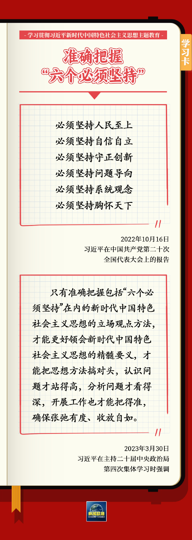 “六個必須堅持”是習近平新時代中國特色社會主義思想的立場觀點方法的重要體現(xiàn)。深入開展學習貫徹習近平新時代中國特色社會主義思想主題教育,推動中國式現(xiàn)代化取得新進展新突破,必須學深悟透、準確把握“六個必須堅持”。