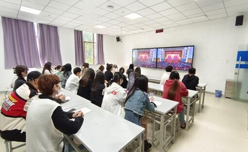 全體學(xué)生會成員、班級團(tuán)干部在明德樓主會場集中收看直播盛況,各團(tuán)支部組織同學(xué)們以宿舍為單位集中收看中國共產(chǎn)黨第二十次全國代表大會開幕會直播。