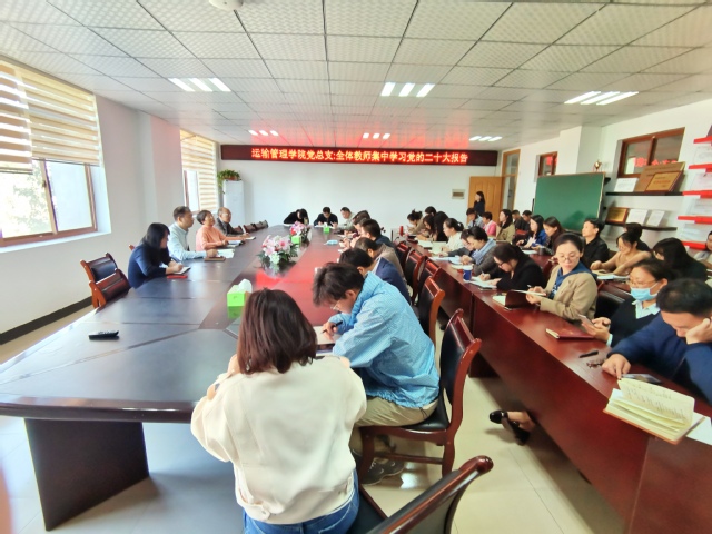 為深入學習黨的二十大報告,緊跟黨中央步伐。10月19日,運輸管理學院黨總支于齊賢樓420會議室,召開全體教師學習黨的二十大報告會議,黨總支書記王艷梅主持會議。