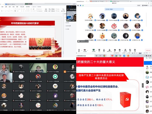 此次班會采用線上形式開展,主要圍繞報告中關(guān)于過去5年的工作總結(jié)和新時代10年的偉大變革、馬克思主義中國化時代化新境界、中國式現(xiàn)代化的中國特色和本質(zhì)要求等重大問題進行學(xué)習(xí)領(lǐng)悟,對報告中提出的一系列新觀點、新論斷、新思想、新戰(zhàn)略、新要求進行梳理解讀,引導(dǎo)廣大師生厚植愛國為民情懷,筑牢理想信念根基。