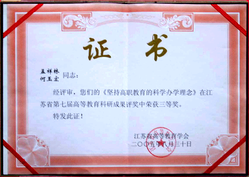 江蘇省高等教育學會“建設高教強省與構建和諧社會”學術研討會于8月23日在常州舉行。會議公布了江蘇省第八屆高等教育科研成果評選結果,由我院孟祥林、何玉宏、陳鎖慶等三位同志合作的課題——《努力探索培養(yǎng)實用型人才的辦學改革模式》榮獲三等獎。這也是我院在進一步加強以科研為先導,全面提高教育科研水平后在全省高等教育科研成果評選中再獲殊榮。