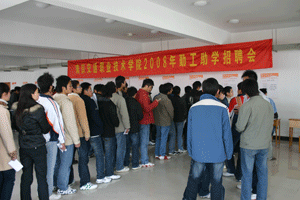 3月5日下午,我院江寧校區(qū)2008年勤工助學(xué)學(xué)生招聘會(huì)在大學(xué)生活動(dòng)中心二樓舉辦。本次活動(dòng)由學(xué)工處學(xué)生資助管理中心組織。圖書(shū)館、后勤中心等18個(gè)部門(mén)和單位共提供了133個(gè)勤工助學(xué)崗位,400多名學(xué)生參加了本次招聘。
