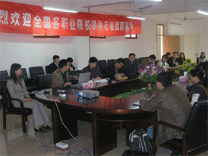 4月11日下午,中國職業(yè)技術(shù)教育學(xué)會(huì)在南京舉行的“職業(yè)院校就業(yè)指導(dǎo)與創(chuàng)業(yè)教育培訓(xùn)研討會(huì)”一行30人來我院參觀考察,學(xué)院黨委副書記許正林、副院長高進(jìn)軍熱情接待了來賓。高進(jìn)軍副院長向來賓介紹了我院近年來建設(shè)與發(fā)展情況。來賓們先后參觀了我院校史陳列室、各系主要實(shí)訓(xùn)室、大學(xué)生活動(dòng)中心和校園等,與我院有關(guān)部門進(jìn)行了友好交流。