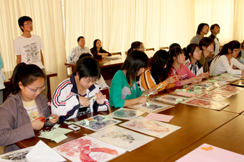 5月14日下午,有“金陵神剪張”之稱的民俗藝術(shù)家張方林先生在明德樓103報告廳為學院廣大剪紙藝術(shù)愛好者作了南京剪紙藝術(shù)講座。張先生講解了剪紙的文化和技巧,并當場為同學們展示了自己的創(chuàng)作過程,同學們則紛紛拿起剪刀和紙跟著張先生學習剪紙。一張張紅紙在同學們獨具匠心的創(chuàng)作下,變成漂亮的菊花、牽?;?,栩栩如生的兔子吃蘿卜、喜鵲上枝頭,活潑的老鼠,展翅的蝴蝶,各式各樣的紅喜字等,在座觀眾無不嘆為觀止,紛紛報以熱烈的掌聲。