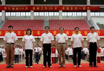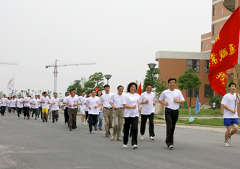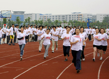在2008北京奧運即將到來之際,為倡導全民健身的健康理念,營造濃郁的迎奧運氛圍,學院于6月11日下午熱烈舉行迎奧運教職工綜合運動會。院黨委書記孟祥林,院長賈俐俐,院黨委副書記許正林,副院長高進軍、王曉農(nóng),副院級調(diào)研員陳玉龍等全體院領(lǐng)導出席并與全體教職工一同參加了活動。