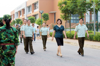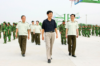 9月19日,院黨委書記孟祥林、院長賈俐俐先后在學院2008級大學生軍訓工作領導小組組長、院黨委副書記許正林的陪同下來到軍訓現(xiàn)場,對學院2008級新生軍訓工作進行了檢閱,并親切慰問了承訓部隊官兵和參訓新生。學院相關部門負責同志陪同參加。
