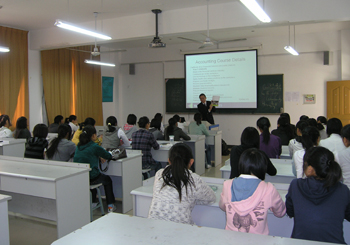 座談會結(jié)束后,陳浩琛博士為學院會計與審計專業(yè)合作辦學項目組成員和2008級會計與審計專業(yè)學生開設(shè)了講座。陳博士介紹了澳大利亞堪培門理工學院的辦學歷史、專業(yè)設(shè)置、留學深造以及專業(yè)教學要求等方面的情況。下午,陳浩琛博士一行在有關(guān)部門負責人陪同下,還參觀了學院校園和會計實訓室。