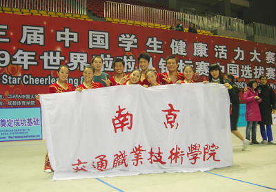 12月16至21日,第三屆中國學(xué)生健康活力大賽暨2009年世界啦啦隊(duì)錦標(biāo)賽中國選拔賽在成都體育學(xué)院舉辦,共有來自全國74所大中小學(xué)健美操代表隊(duì)參加了此次比賽。學(xué)院健美操隊(duì)榮獲健身健美操徒手操組三等獎(jiǎng),這也是江蘇省唯一取得成績的隊(duì)伍。