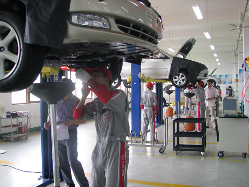 來自于煙臺職業(yè)技術(shù)學(xué)院、浙江交通技師學(xué)院和南京中升豐田、南京長江豐田企業(yè)的4名專家組成的考核小組根據(jù)一汽豐田培訓(xùn)部的考核要求,在汽車實訓(xùn)中心豐田技術(shù)實訓(xùn)區(qū)對學(xué)院T-TEP 學(xué)校30名豐田班學(xué)生進(jìn)行了考核。考核內(nèi)容分筆試和實操兩部分。考核評分嚴(yán)格細(xì)致,有效地檢驗了學(xué)生熟練掌握標(biāo)準(zhǔn)化、規(guī)范化的四萬公里保養(yǎng)操作流程情況、迅速查維修手冊的習(xí)慣,同時對培養(yǎng)學(xué)生更好地貫徹落實豐田公司“客戶第一”的服務(wù)理念,牢記工作安全的重要性,養(yǎng)成在工作區(qū)域執(zhí)行日常5S(整理、整頓、清潔、清掃、修養(yǎng))的習(xí)慣,樹立細(xì)致嚴(yán)謹(jǐn)認(rèn)真的工作態(tài)度,形成一絲不茍的工作作風(fēng)等起到了進(jìn)一步強(qiáng)化作用。