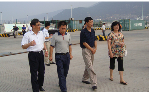 認(rèn)真聽取馬忠標(biāo)副局長(zhǎng)介紹港口建設(shè)和發(fā)展情況