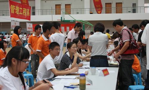 在新生報(bào)到點(diǎn)——行健館內(nèi),各系迎新工作有條不紊,專業(yè)介紹展臺(tái)依次排開;醫(yī)護(hù)人員認(rèn)真做好疾病防控教育,及時(shí)測量報(bào)到新生的體溫;學(xué)院多輛校車往返于學(xué)院與火車站、汽車、碼頭等地接送學(xué)生;學(xué)生志愿者在帶隊(duì)老師的帶領(lǐng)下分布各個(gè)站點(diǎn)熱情引導(dǎo)新生順利、有序入學(xué)。迎新期間,學(xué)院全體院領(lǐng)導(dǎo)多次視察新生報(bào)到現(xiàn)場,慰問迎新工作人員,了解新生報(bào)到情況,與學(xué)生家長交談,并巡視、指導(dǎo)、協(xié)調(diào)迎新工作;各相關(guān)部門充分準(zhǔn)備、精心組織,各項(xiàng)接待與服務(wù)工作井然有序。至下午5時(shí)許,學(xué)院2009級新生報(bào)到工作順利結(jié)束。