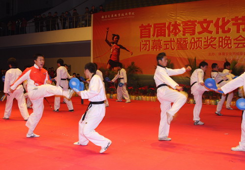 一套爆發(fā)力強(qiáng)、動(dòng)作優(yōu)美,頗具觀賞性的跆拳道表演拉開(kāi)了晚會(huì)的序幕。激情奔放的《動(dòng)感節(jié)拍》、栩栩如生的《我們的體育課》、青春活潑的《健身街舞》和《快樂(lè)校園》、鏗鏘有力的《怒放的生命》等精彩、節(jié)目相繼上臺(tái)演出,給現(xiàn)場(chǎng)觀眾帶來(lái)了一場(chǎng)視聽(tīng)盛宴,博得了觀眾的陣陣掌聲,充分展示了學(xué)院師生健康快樂(lè)、積極向上的精神風(fēng)貌及學(xué)院體育課程建設(shè)的優(yōu)秀成果。