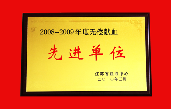 喜訊:學院喜獲“2008—2009年度江蘇省無償獻血先進單位”稱號
