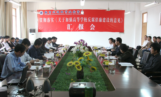 考核組聽取學(xué)院貫徹落實(shí)《關(guān)于加強(qiáng)高等學(xué)校反腐倡廉建設(shè)的意見》情況匯報