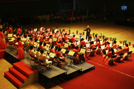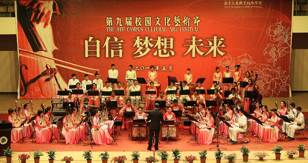 來(lái)自南京醫(yī)科大學(xué)的民族樂(lè)團(tuán)以其嫻熟的技藝,先后演奏了民樂(lè)合奏《春節(jié)序曲》、《臺(tái)灣隨想曲》、《幸福花》,絲竹小合奏《春江花月夜》,二胡齊奏《新賽馬》,琵琶與打擊樂(lè)《霸王卸甲》,竹笛獨(dú)奏《春到湘江》,鼓樂(lè)合奏《龍騰虎躍》等十首曲目。演出由江蘇藝術(shù)劇院著名演奏家,南京醫(yī)科大學(xué)民族樂(lè)團(tuán)常任指揮、藝術(shù)總監(jiān)盧小新指揮。