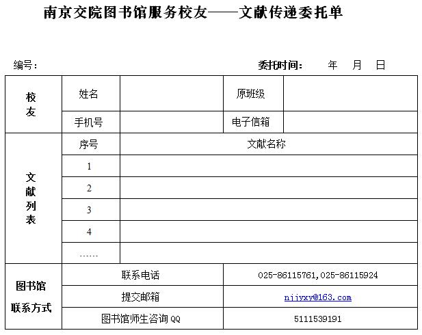 南京交院圖書館服務(wù)校友——文獻(xiàn)傳遞委托單.doc