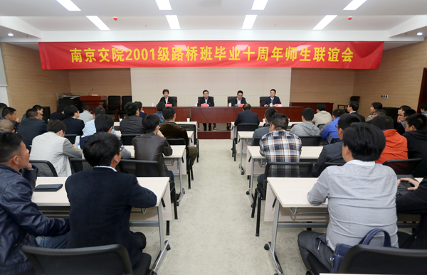 2014年11月22日,我院2001級路橋?qū)I(yè)校友歡聚母校。校友們在圖書館203會議室舉行了聯(lián)誼座談會。院長張毅,副院長周傳林,路橋與港行工程學(xué)院院長蔣玲,黨總支書記張文斌應(yīng)邀出席。參加聯(lián)誼座談的有來自省內(nèi)交通行業(yè)的115名校友。各班學(xué)生代表和教師代表先后作了發(fā)言,共同回顧了在母校學(xué)習(xí)生活的美好時光。院長張毅介紹了學(xué)院最近10年的建設(shè)發(fā)展情況,并表達了對學(xué)院蓬勃發(fā)展的期望和對全體校友美好發(fā)展前景的誠摯祝愿。