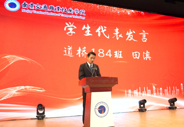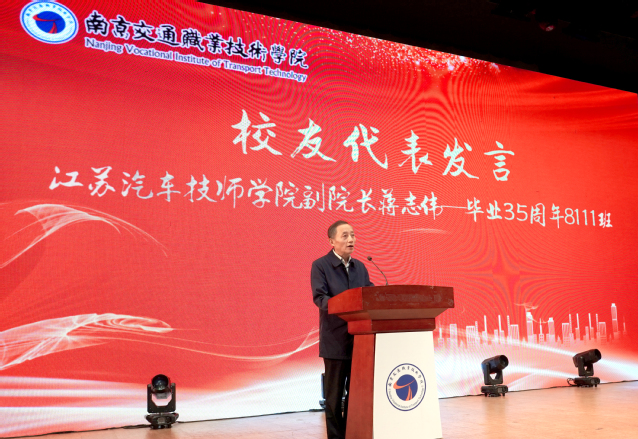 校友代表、江蘇汽車技師學院副院長、8111班蔣志偉同學發(fā)言