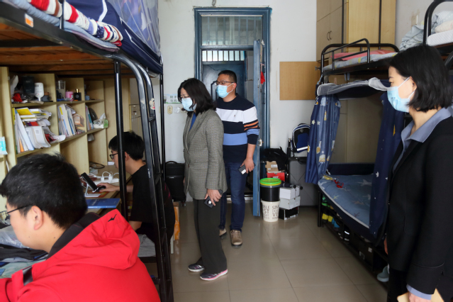 為進(jìn)一步扎實(shí)做好校園封閉管理期間疫情防控、教育教學(xué)和生活保障等各項(xiàng)工作,4月13日上午,學(xué)院黨委書記賈俐俐帶領(lǐng)全體在校值守的院領(lǐng)導(dǎo)在相關(guān)職能部門負(fù)責(zé)人陪同下深入學(xué)生公寓,指導(dǎo)疫情防控工作,看望慰問(wèn)校園防控一線的師生。