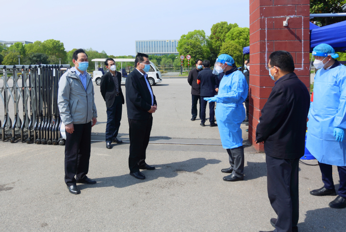 4月17、18日,院長張毅率領全體B崗輪值院領導對校園疫情防控工作和線上教學情況開展巡查,黨委副書記周傳林,副院長應海寧,副校級領導陸春其,校園疫情防控工作相關專項工作組負責人參加巡查。