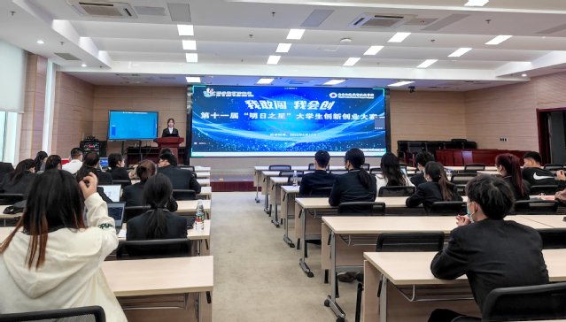 5月13日,學(xué)院在圖書館B203舉辦第十一屆“明日之星”大學(xué)生創(chuàng)新創(chuàng)業(yè)大賽決賽,副院長(zhǎng)王道峰出席,創(chuàng)新創(chuàng)業(yè)學(xué)院教師、各項(xiàng)目團(tuán)隊(duì)以及指導(dǎo)教師參加活動(dòng)。本次決賽采用“線上+線下”模式進(jìn)行,項(xiàng)目團(tuán)隊(duì)線下匯報(bào)答辯,校外評(píng)審專家通過騰訊會(huì)議進(jìn)行線上打分點(diǎn)評(píng)。