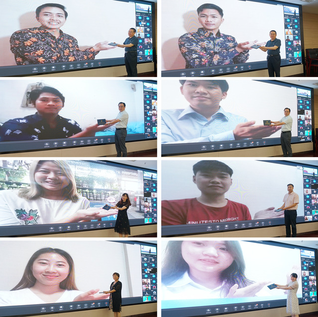 境內(nèi)老撾留學(xué)生寶麗作為畢業(yè)生代表進行了發(fā)言,她回憶了在學(xué)校、在中國學(xué)習(xí)生活的點點滴滴,以及感受到的疫情期間“中國奇跡”,和學(xué)校的溫暖與力量,并表示回國后會為中老友誼做出自己的努力。遠在柬埔寨的蕭志勇作為境外畢業(yè)生代表發(fā)言,他表示自己一直擁有一個“中國留學(xué)夢”,這段不平凡的經(jīng)歷讓他收獲良多,并表達了對學(xué)校和老師感謝。