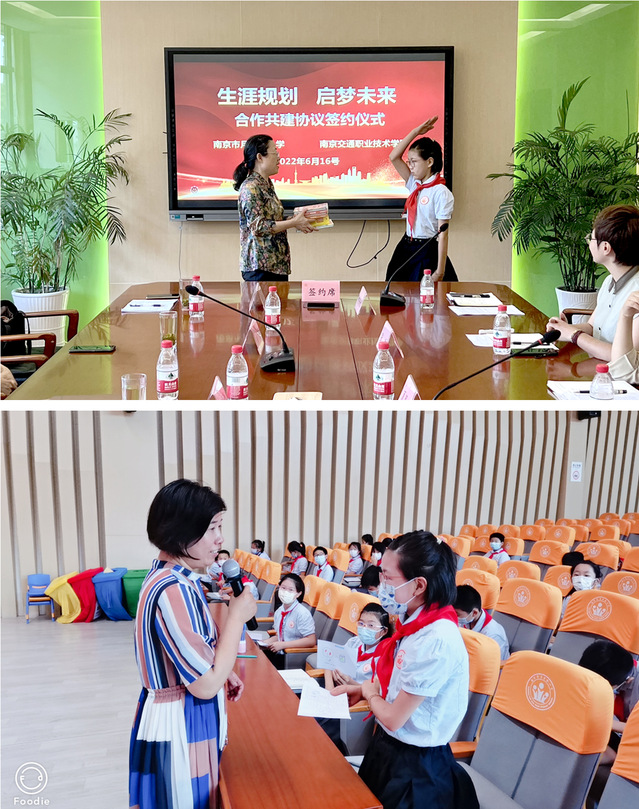 為充分發(fā)揮職業(yè)院校基層黨組織在中小學(xué)職業(yè)啟蒙教育中的積極作用,幫助小學(xué)生理解職業(yè),提高職業(yè)能力培養(yǎng)意識,近日,全國黨建工作樣板支部、南京交通職業(yè)技術(shù)學(xué)院電子信息工程學(xué)院第二黨支部攜手月華路小學(xué)黨支部結(jié)對共建職業(yè)生涯發(fā)展服務(wù)基地、紅領(lǐng)巾校外實踐基地。南京交通職業(yè)技術(shù)學(xué)院副院長王道峰、招就處處長耿巍、電子信息工程學(xué)院黨總支、第二黨支部及關(guān)工委相關(guān)負(fù)責(zé)人,月華路小學(xué)黨支部書記、校長夏翠蓮、副校長徐葉兵、學(xué)生活動部及課程開發(fā)部負(fù)責(zé)人出席了簽約授牌儀式。
