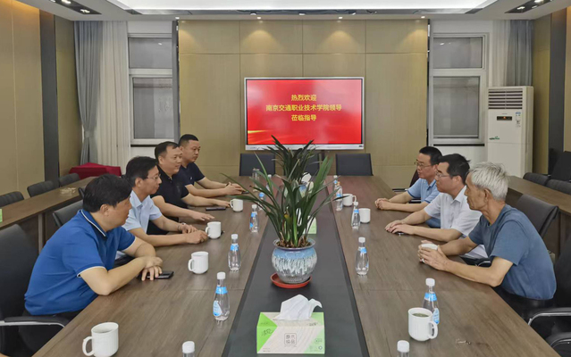 在邗江交通工程建設(shè)有限公司,董事長丁壽文校友向母校領(lǐng)導(dǎo)介紹了企業(yè)建設(shè)發(fā)展情況,并共同就交通產(chǎn)業(yè)發(fā)展前景、交通工程相關(guān)專業(yè)人才需求、拓展產(chǎn)教融合新平臺新途徑進(jìn)行了討論交流。