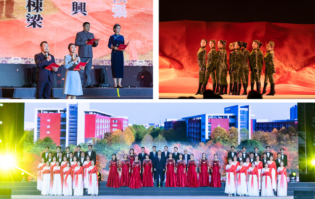 大會的第二階段,師生代表通過朗誦與合唱方式,向母校深情表白。舞蹈《我們的旗幟》展現(xiàn)了交院學子矢志不渝跟黨走,奮力開創(chuàng)新篇章的決心?!敖或G天地,大道康莊,通達山海,朝旭耀煌!”這首鏗鏘有力、氣勢磅礴的《南京交通職業(yè)技術學院賦》由1988級校友施玲精心創(chuàng)作,代表全體校友表達對母校的殷殷祝福和拳拳深情。老中青教師代表共唱《校歌》,悠揚的旋律傳遞著一代代交院人對建設中國特色高水平職業(yè)院校最美華章的期盼與祝福。