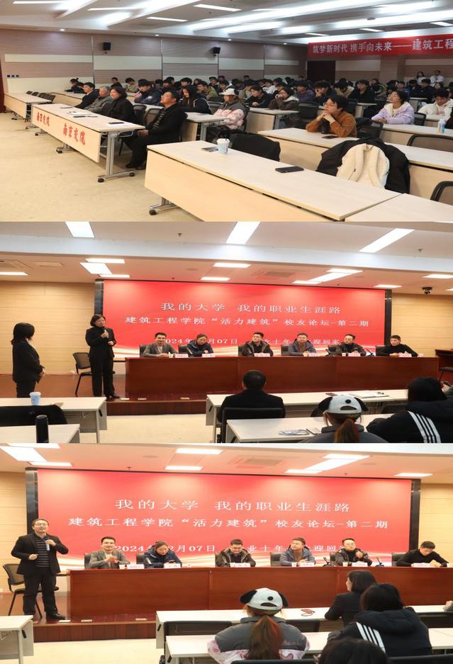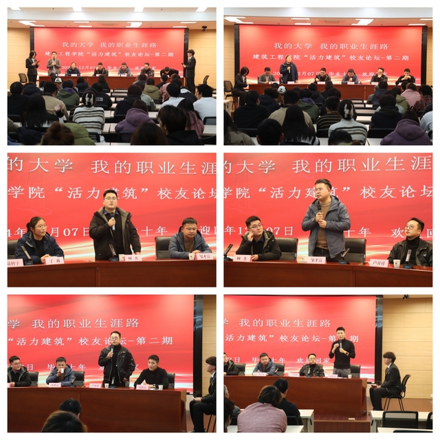 陽光灑滿校園,建筑工程學(xué)院迎來了一批特殊的“歸巢燕”——校友們懷著對(duì)母校的深情厚誼,跨越時(shí)光,重聚于此。12月7日下午,建工學(xué)院在圖書館B203舉辦我的大學(xué),我的職業(yè)生涯路——第二期“活力建筑”校友論壇,論壇邀請(qǐng)了陸科宇、丁莉、顧杰、鄒才富、盧開祥、馬洪天六位優(yōu)秀校友回校為建工學(xué)院學(xué)子們提供寶貴的職業(yè)發(fā)展經(jīng)驗(yàn)與人生規(guī)劃指導(dǎo)。建筑工程學(xué)院黨總支書記張麗君、副書記彭涌濤、副院長祁順彬、關(guān)工委常務(wù)副主任唐利國、優(yōu)秀校友及2024級(jí)各班級(jí)學(xué)生代表140余人參加活動(dòng)。