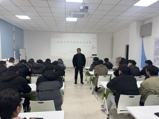 2024年12月7日,電子信息工程學院信未來職業(yè)生涯工作室分別在大學生活動中心共享空間、J棟一站式學生社區(qū)舉辦“我的大學我的職業(yè)生涯路”分享會。分享會邀請優(yōu)秀校友王軍、薛松主講,會議由吳穎老師主持,電信學院、軌道學院共計150余人參加。