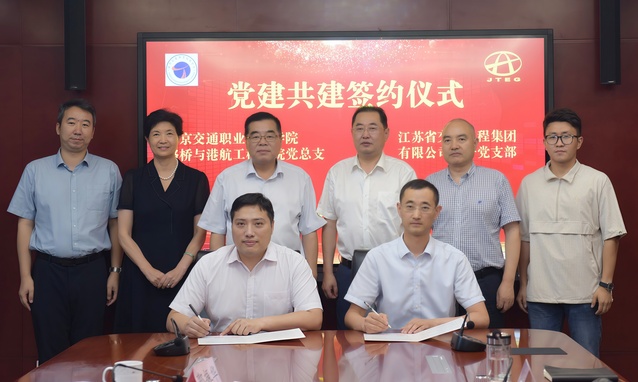 江蘇省交通工程集團(tuán)有限公司第一黨支部書記張峰與路橋與港航工程學(xué)院黨總支副書記郭振華分別介紹各自黨組織的基本情況,并在黨建共建、交流合作、人才培養(yǎng)等方面達(dá)成合作意向。隨后,雙方舉行了共建協(xié)議簽約儀式。