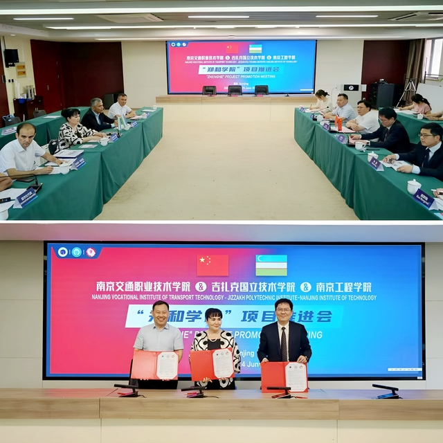 24日下午,南京交通職業(yè)技術(shù)學(xué)院 - 吉扎克國(guó)立技術(shù)學(xué)院 - 南京工程學(xué)院 “鄭和學(xué)院”項(xiàng)目推進(jìn)會(huì)在弘毅223會(huì)議室召開。學(xué)院院長(zhǎng)王道峰、吉扎克國(guó)立技術(shù)學(xué)院副校長(zhǎng)埃什別科娃?薩諾巴爾、南京工程學(xué)院黨委副書記濮勵(lì)杰出席會(huì)議,黨委副書記文愛民主持會(huì)議。