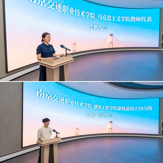 馬克思主義學(xué)院教師代表李輝、學(xué)生代表建筑造價2305 班任新升分別圍繞“育人初心與實踐構(gòu)想”“交通人的成長與擔(dān)當(dāng)”展開交流。