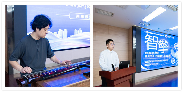 我校建筑工程學(xué)院教師孫成東以古琴為媒,向臺(tái)灣師生細(xì)致講解了古琴制作工藝,并現(xiàn)場(chǎng)演奏了古琴曲《良宵引》,琴音悠遠(yuǎn)中寄托著“萬(wàn)家團(tuán)圓”的美好愿景,讓在場(chǎng)的兩岸師生深切感受到了中華傳統(tǒng)技藝的雅致與深情。軌道交通工程學(xué)院于文杰同學(xué)代表團(tuán)隊(duì)分享了《智擎——超精官網(wǎng)磁阻電機(jī)系統(tǒng)》創(chuàng)新創(chuàng)業(yè)項(xiàng)目,對(duì)項(xiàng)目從策劃到落地、各項(xiàng)技術(shù)難點(diǎn)及突破做了詳細(xì)闡釋。